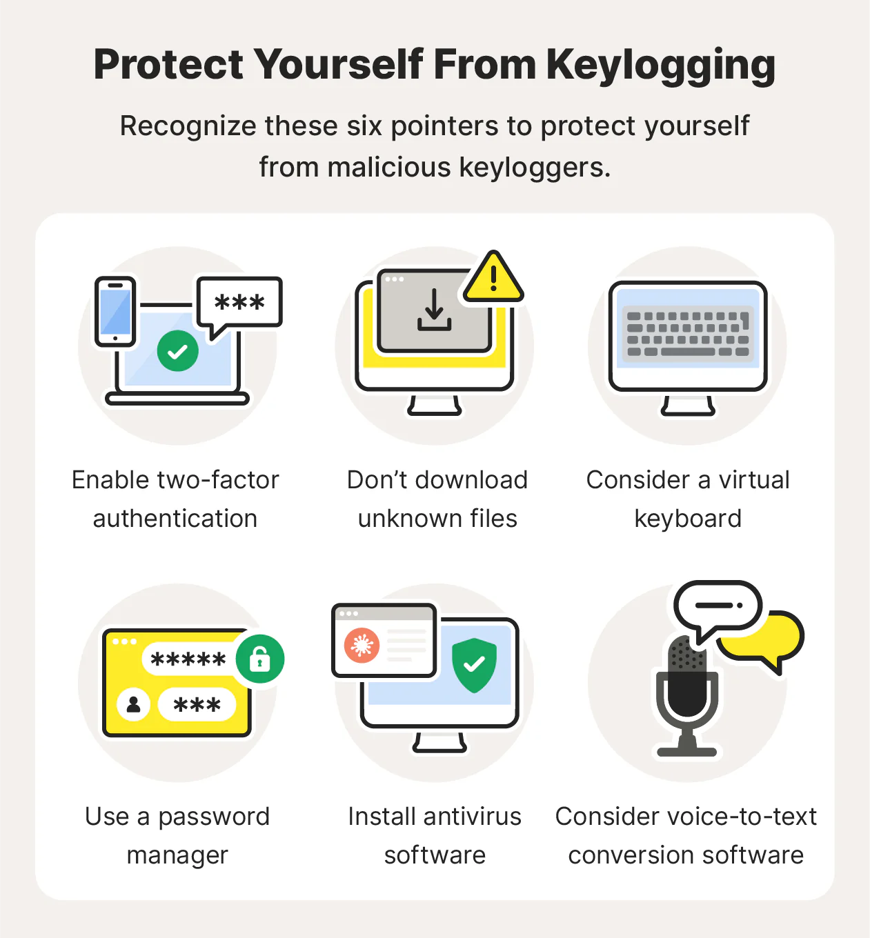 Protecting yourself from keyloggers requires a combination of good cybersecurity practices, such as using strong security software, staying vigilant about downloads and network activity, and enabling two-factor authentication. By taking these steps, you can significantly reduce the risk of falling victim to keyloggers and other types of cyber threats.